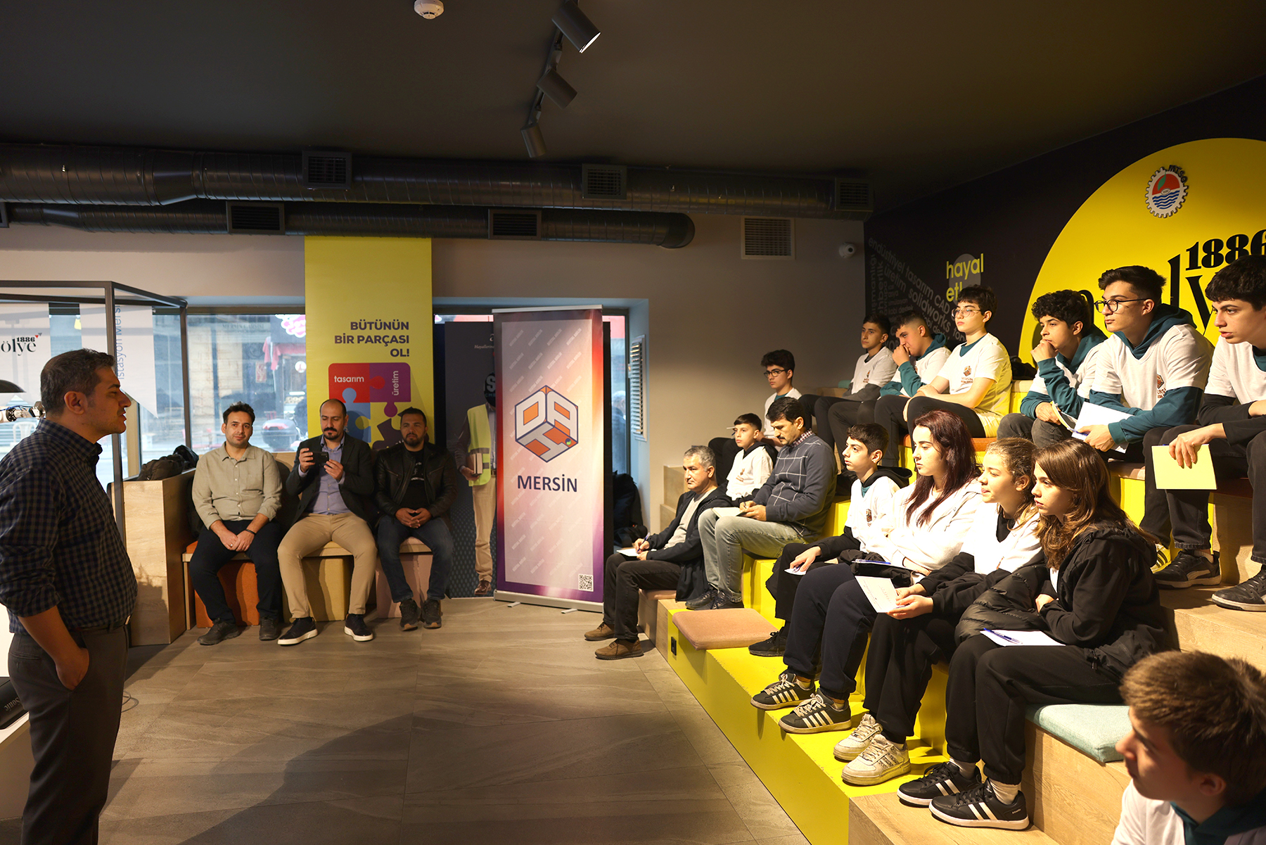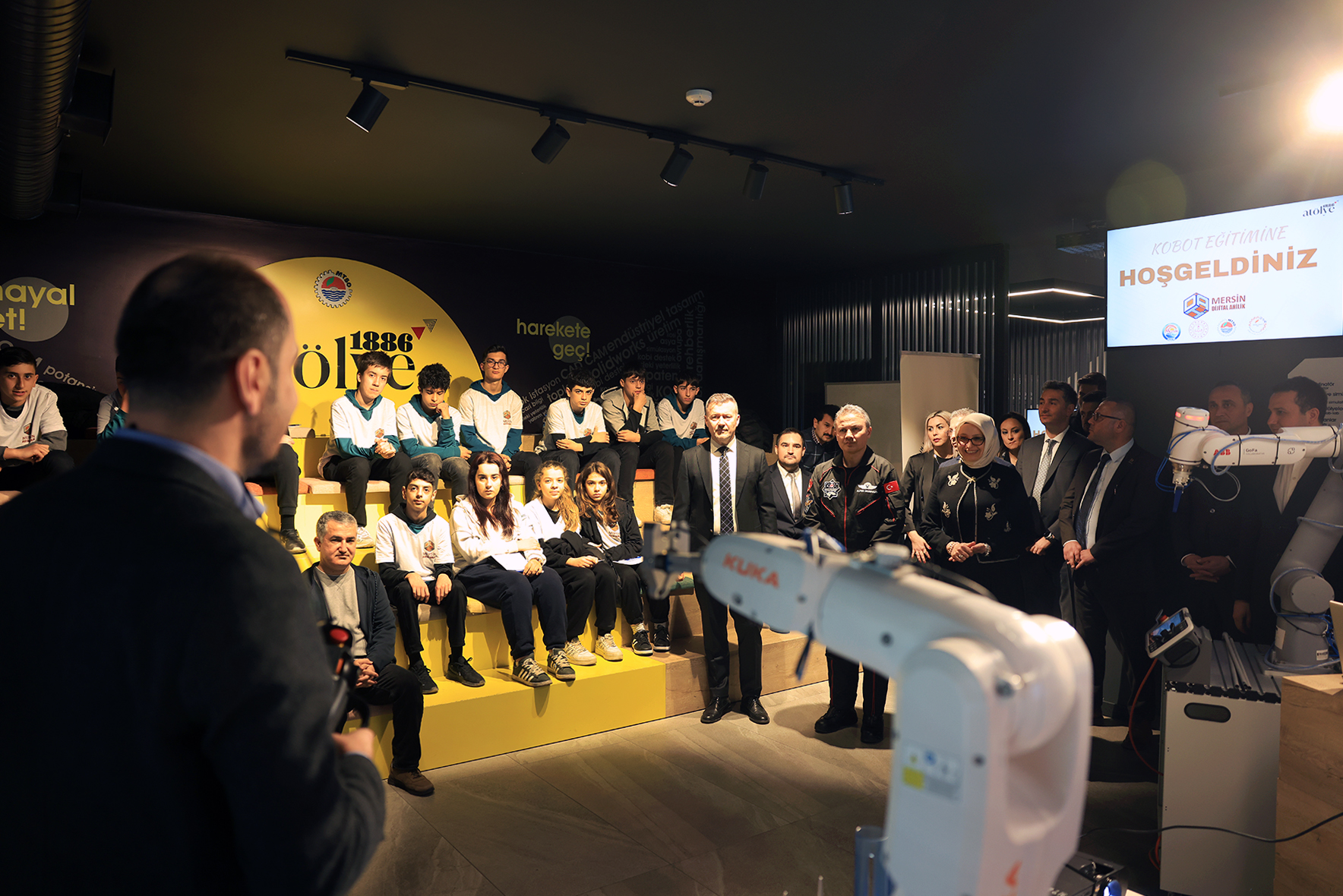 Bu etkinliklerin ilki MTSO Atölye 1886’da Atatürk Mesleki ve Teknik Anadolu Lisesi Savunma Sanayi Bölümü öğrenci ve öğretmenlerine yönelik gerçekleştirilen Kobot Eğitimi oldu. Eğitimin ilk gününde öğrencilere bir de sürpriz yapıldı. MTSO Yönetim Kurulu Başkanı Hakan Sefa Çakır, Mersin İl Milli Eğitim Müdürü Fazilet Durmuş ile birlikte Türkiye’nin ilk Astronotu Alper Gezeravcı öğrencileri ziyaret etti. Atölyede alınan eğitimin gençlerin geleceğine önemli bir katkı sunacağına inandığını kaydeden Gezeravcı, “Robotlar bugün hayatımızın her alanında. Yapay zeka kademe kademe hayatımıza giriyor. Robotik kollar insanların hükmetmesi gereken alanlar” dedi. Ardından uzay çalışmaları hakkında bilgiler paylaşan Gezeravcı gençlerin merak ettiği soruları yanıtladı.